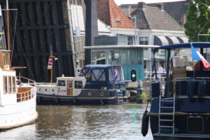 Vor dem berühmten Stadttor warteten bereits einige Schiffe und wir wollten in die Stadt hinein fahren. Als sich die Hebebrücke öffnete fuhren wir in die Stadt hinein, ausser André Keller mit der Linna. Wir drei konnten kurz darauf steuerbordseitig anlegen und unsere Schiffe vertäuen. André hatte einen Platz vor der Hebebrücke vorgezogen.
