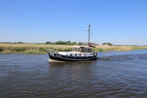 In der Langwarder Wielen bogen wir Backbord ab und fuhren über die Noarder Alde Wei zum Goaiingarypster Puollen. Über den Burstumerrak fuhren wir weiter … bis ins Burgumer Mar. Es gab so viele Verzweigungen, Seen und Richtungsänderungen, dass ich ehrlich gesagt etwas die Orientierung verlor. Dank unseren Navigationssystemen fuhren wir stetig dem Ziel entgegen.