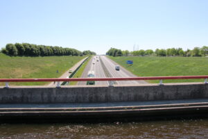 Ein anderes Mal fuhren wir über ein Aquadukt, das über eine Autobahn und eine Landstrasse führte. Eigenartiges Gefühl, wenn man mit einem Schiff über die Autobahn fährt.