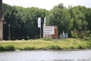 Wir fuhren am Stadthaven von Venlo vorbei, den wir schon mehrere Male besucht hatten. Der Hafen ist schön gelegen, verfügt über Wasser und Strom, aber leider über keine sanitarischen Anlagen. Wir hatten gehofft, dass der beobachtete Umbau nördlich an den Stadthaven angrenzend hier Abhilfe schaffen sollte, sahen uns aber getäuscht. Es gibt im Hafen nach wie vor keine Duschanlagen oder Toiletten.