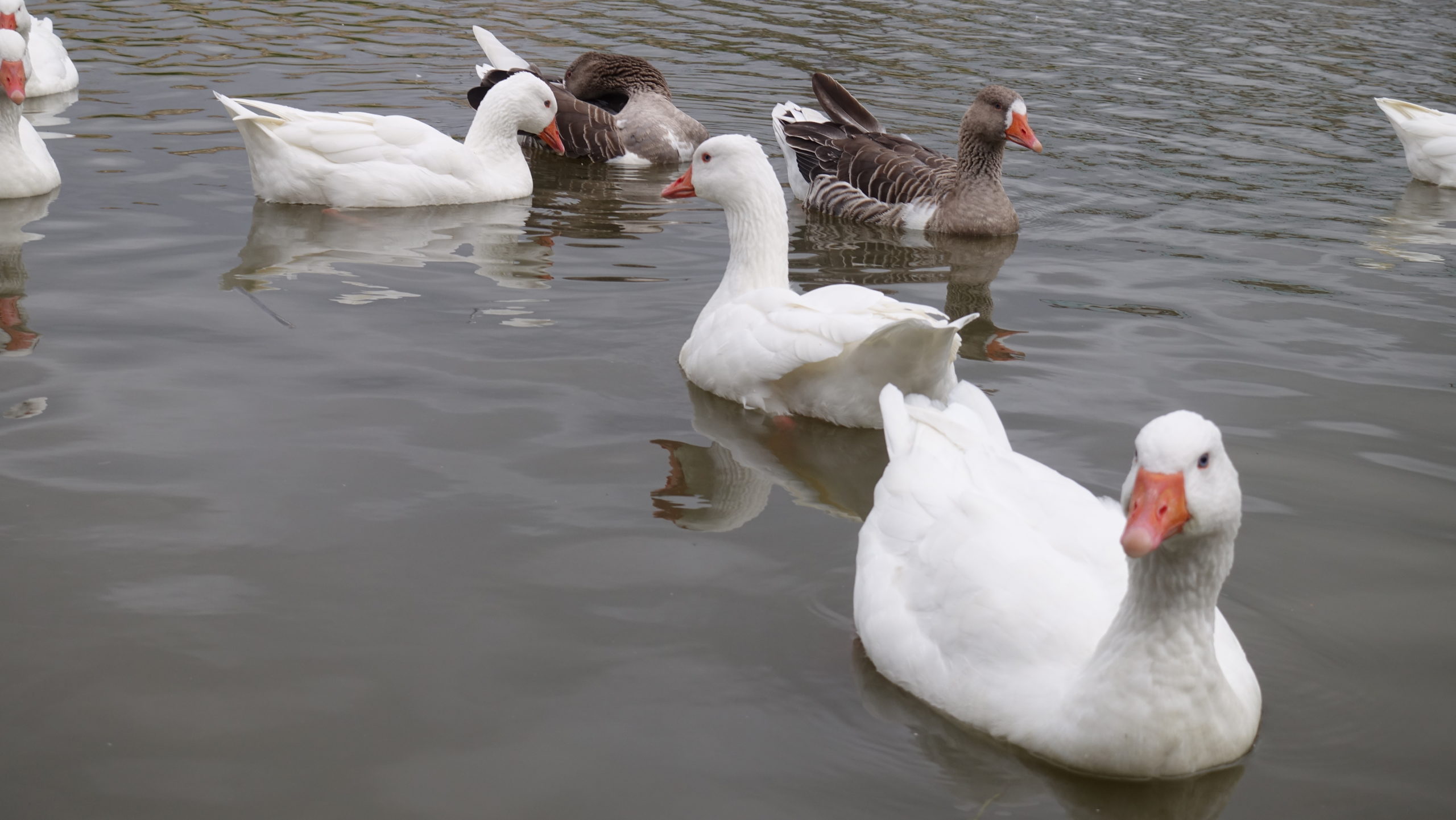 Den weissen Gänsen geht’s wie uns: Es sind Hausgänse, die das Fernweh packte und in der Folge mit Wildgänsen ausgebüxt sind.