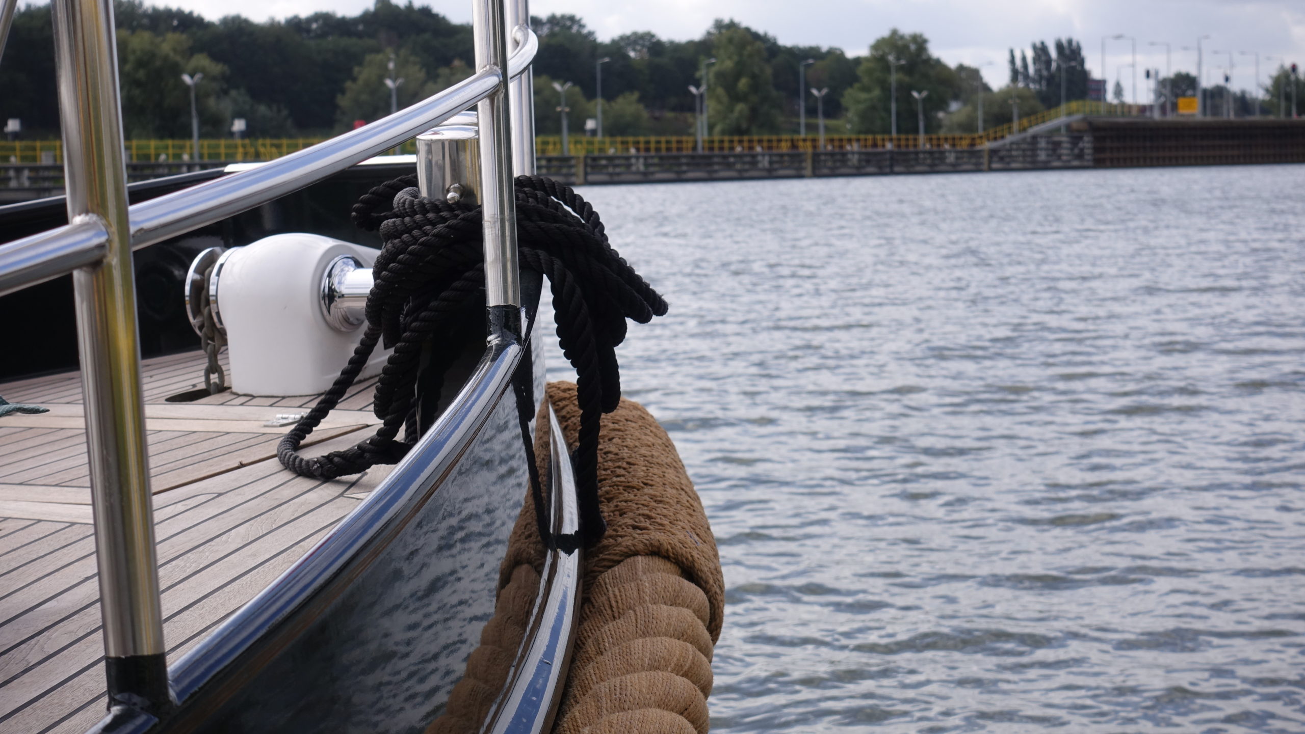 Wir fahren weiter bis zur Linne-Schleuse. Dort fährt noch ein Cargo in die Schleuse. Ist ist bereits Nachmittag um drei und der Skipper links will noch bis Maastricht. Das wird er kaum vor Einbruch der Nacht schaffen. Das Anlegemanöver zeigte, dass sie nicht so geübt sind.