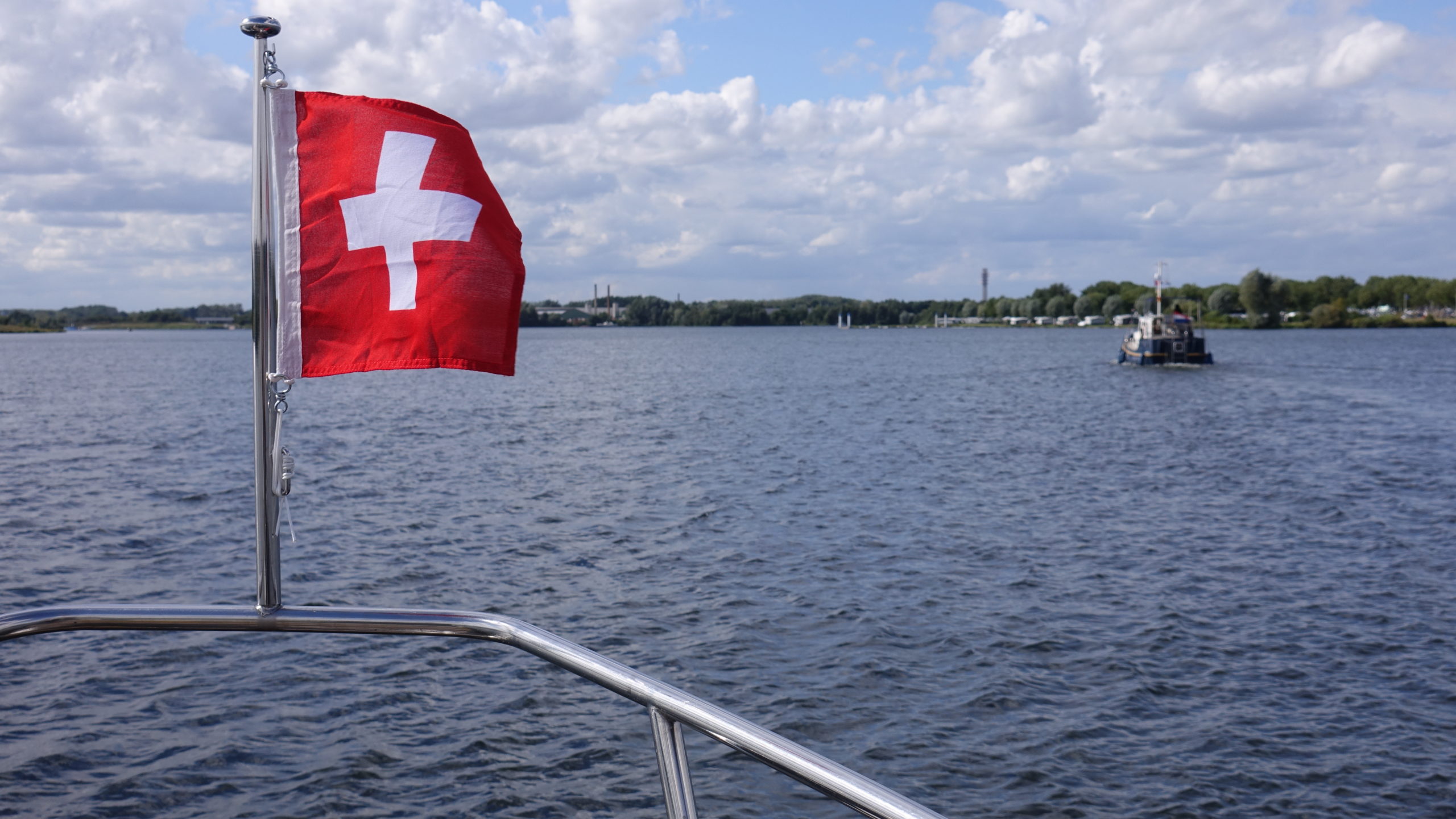 Kilian verlässt uns nach dem Frühstück und fährt zurück in die Schweiz. Angela und Yannick helfen mir auf der Joy. Vor der Abfahrt sagen uns die Gänse auf Wiedersehen.