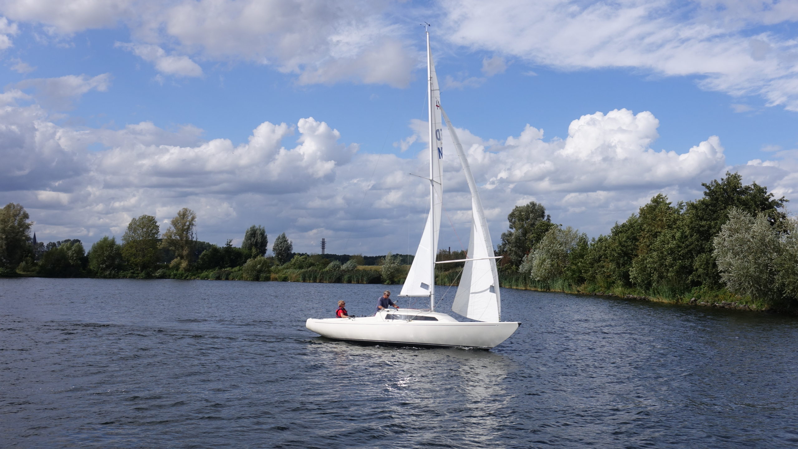 Wir beschliessen, noch auf dem See vor Thorn zu ankern. Dabei begegnen wir einem Segler, wie sie oft auf den Flüssen und Seen anzutreffen sind.