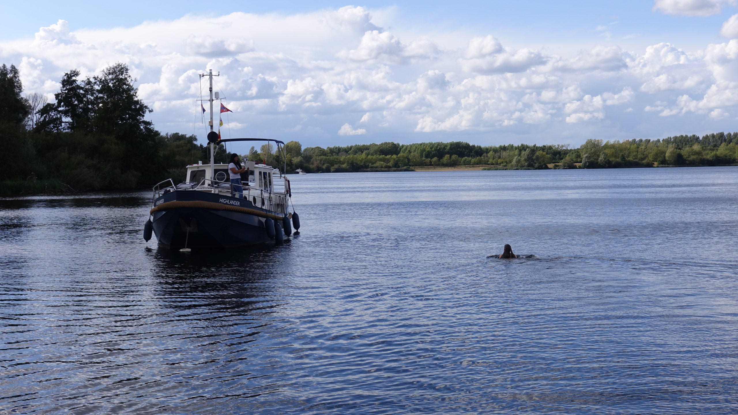 Angela egalisiert gleich noch den Langstrecken-Schwimmrekord von Yannick, indem sie bis zur Highlander hinüber schwimmt.