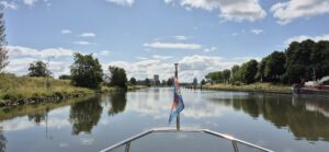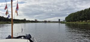 Anschliessend fuhren wir bergwärts und trotz ansprechenden Tourenzahlen kam ich kaum auf 10 km / Std., was unserer normalen Reisegeschwindigkeit entspricht. Der Grund liegt in der Fliessgeschwindigkeit der Maas und dem hohen Wasserstand. Der lag über dem Durchschnitt, was sich dann auf unsere Taranaki auswirkte. Vor der Schleuse, wo wir vom Fluss geschützt sind, erreichten wir unverzüglich normale Reisegeschwindigkeit.