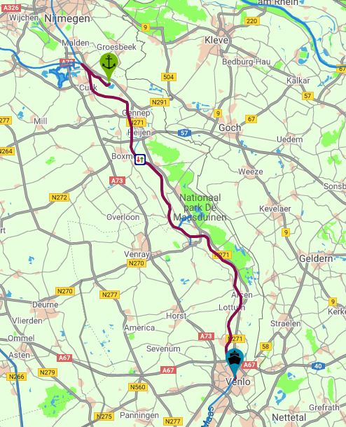 Nach einem feinen Frühstück in der Mocca Coffee Company (Oude Markt 3, Venlo) kann der Tag nicht schlecht beginnen. Gestärkt und bei bedecktem Himmel machen wir die Schiffe startklar, lösen die Leinen und fahren gegen Norden.