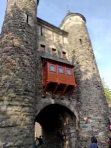Robert wollte für einmal an der Hafenmauer in der Maas festmachen. Obschon wir normalerweise mit dem Bug bergwärts festmachen, wollte Robert über seine offene Salontüre die Stadtsicht geniessen.
