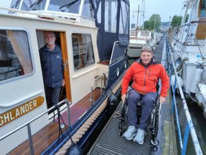 In Maastricht hiessen wir Martin und Doris Schmied an Bord willkommen. Martin ist seit einem Unfall an einen Rollstuhl gebunden und wird die Reise mit der Highlander «unter die Räder» nehmen. Doris kommt bei unserer Taranaki an Bord.