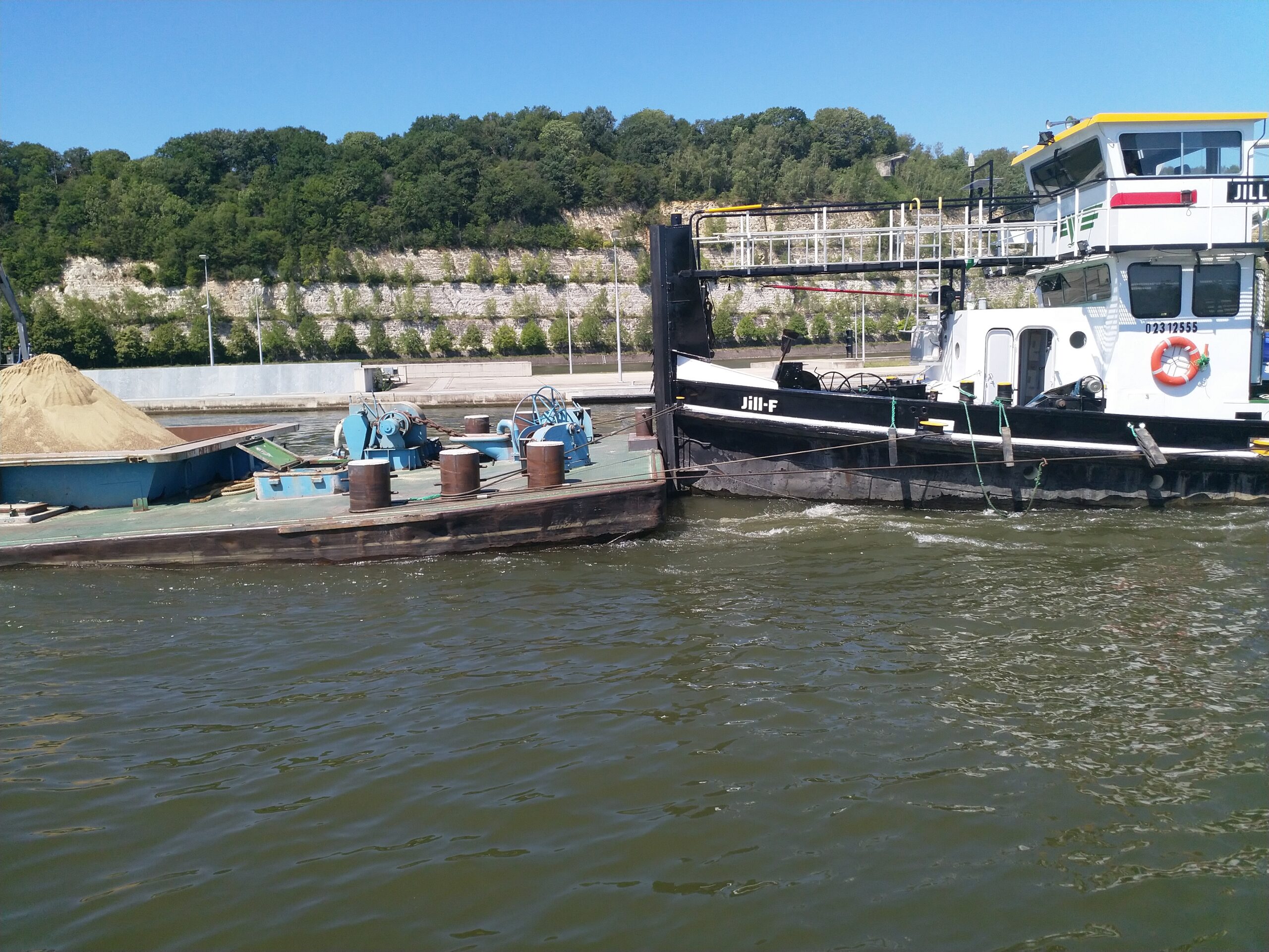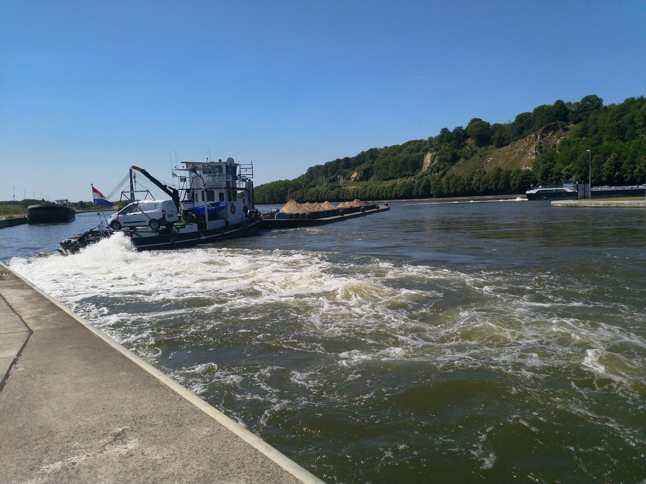 Hier ein Schub-Cargo die Schleuse Lanaye verlassend …