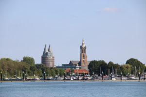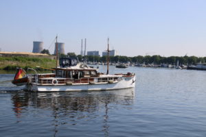 Robert fuhr mit seinem Schiff direkt zum Comfortparc, wir wollten noch zur ‚t Tegelhuuske Maasbrasserie. Die Anlegestelle war leider besetzt mit kleinen Schloepen, dazwischen mehrere Meter Abstand. Wir versuchten es dann im Sailcenter Limburg, die Hafenmeisterin wollte uns aber nicht anlegen lassen. Unser Schiff sei für den Steg zu gross.