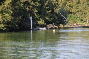Manchmal enden Sportboote auch traurig. Vom Eigner im Stich gelassen, versinken sie dann früher oder später. Leider gibt es in den Niederlanden keine Registrierungspflicht, weshalb man oft auch Segelboote angelegt sieht, die über Jahre verlassen immer an der gleichen Stelle hängen.