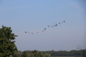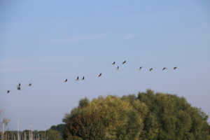 Wir beobachteten die Graugänse in Flugformation. Die Überwinterungsgebiete der Graugans sind an der Westküste der iberischen Halbinsel, an den Nordküsten von Algerien und Tunesien und die Küsten der Adria.