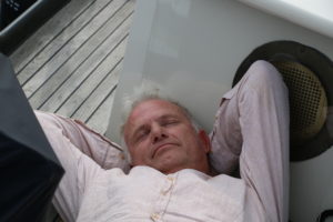 Wir legten ab und Ilse machte es sich auf Achterdeck gemütlich.
