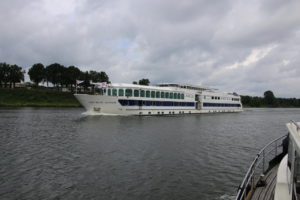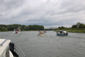 Wir erwarteten, dass in Roermond mehr Schiffe talwärts schleusen werden, was sich bewahrheitete. Nach der Schleuse setzte ein Run ein, als käme nurmehr ein Schiff pro Schleusung weiter.