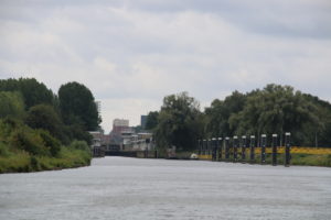 Heute morgen verabschiedeten wir uns von Robert, der auf seiner Highlander im Comfortparc bleiben wird, bis Liza zu ihm stösst. Dann fuhren wir gegen halb zehn Uhr los Richtung Venlo. Gemäss unseren Informationen funktionieren die beiden Schleusen in Linne und in Roermond wieder, was sich rasch bestätigte. In Linne waren wir sechs Sportboote, die abwärts schleusten. Die Linne-Schleuse hat den Vorteil, dass sie halbiert werden kann, wenn wenig Schiffe unterwegs sind.