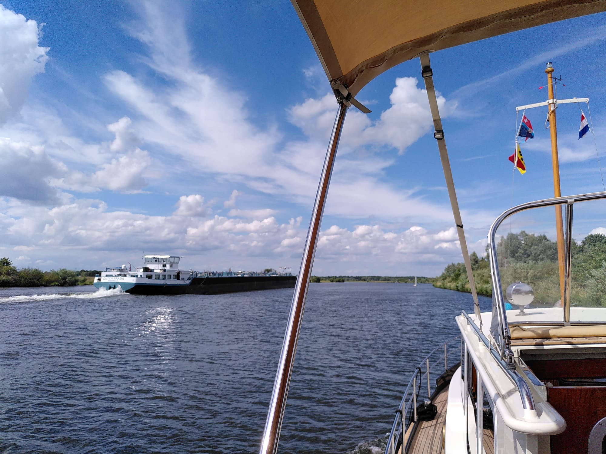 Trotz bemerkenswerter Cargo-Schiffe ging’s geruhsam gegen Venlo. Entspannt tuckerte Joy ihres Weges, ohne die Berufsschiffer zu behindern, wie es sich gehört. Auf der Reise gibt es deinen einen oder anderen Schnappschuss, zu sehen gibt es sowieso immer etwas.