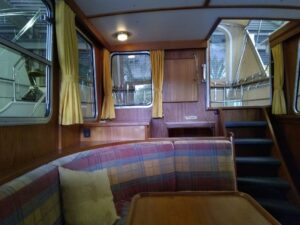 Hier ein Blick auf den Innensteuerstand. Alles noch im Originalzustand mit Ausnahme des Bugstrahlruders, das später eingebaut wurde.
