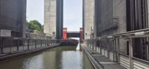 Schliesslich konnten wir aus der Kammer ausfahren, wo schon das nächste Frachtschiff wartete.