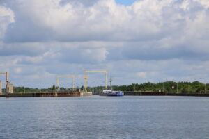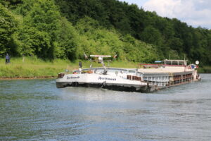 Nach einiger Zeit im Kanal nach der Schleuse trafen wir unterwegs ein Frachtschiff, das den gleichen Namen trägt, wie mein Bruder.
