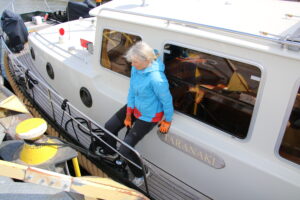 Heute Morgen brachte uns die Hafenmeisterin Brötchen bis ans Schiff. Welch toller Service! Sie meinte, da ein Kollege sowieso ins Dorf fahren wollte, habe er gefragt, ob wir Brötchen wünschten.