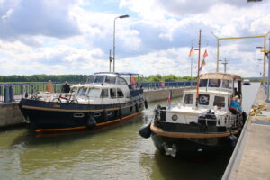 Schliesslich gelangten wir zum imposanten Schiffshebewerk Lüneburg – Scharnebeck. Peter Morgenthaler hatte uns angemeldet inklusive unserer Schiffsdaten (Länge und Breite). Die Linna und die Taranaki konnten hinter einem Leichter in die Wanne einfahren und parallel hinten festmachen. Peter musste mit Zattera warten, bis er den „Lift“ ebenfalls benutzen konnte.