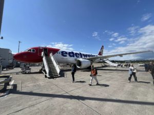 Fahrer. Trotz Ferienzeit und vielen Leuten auf dem Flugplatz kommen wir schnell vorwärts und schon bald sitzen wir in unserem Edelweiss Flugzeug, welches pünktlich Richtung Edinburgh abhebt. Nach 2 Stunden und 15 Minuten landen wir in Edinburgh und werden mit einem Kleinbus zu unserem Hotel gefahren, alles klappt wunderbar!
