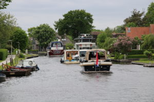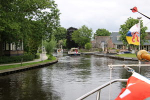 Beim Waterpark Beulaker Haven gab’s die nächste Ziehbrücke und wir konnten wieder im Nachgang zum Frachter durchfahren. In diesen Gewässern wird die Geschwindigkeit auf 9 km / Std. beschränkt. Nach der Ziehbrücke bogen wir in die Beulakerwijde ein. Es herrschte eine steife Bise und war ziemlich kalt. Ich hat erstmals lange Hosen an- und eine warme Jacke übergezogen.