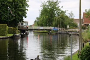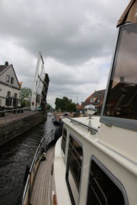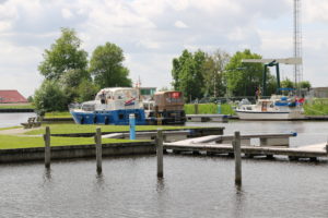 Heute fuhren wir etwa um halb zehn Uhr los und verliessen den Jachthaven De Krannerweerd Richtung Norden. Nach kurzer Zeit bereits zweigten wir Backbord ab über die Beukerssluis. Diese ist kombiniert mit einer Ziehbrücke. Vor uns fuhr ein Frachter mit wenig Tiefgang, denn ab der Schleuse ist Schluss mit grossen Cargos.